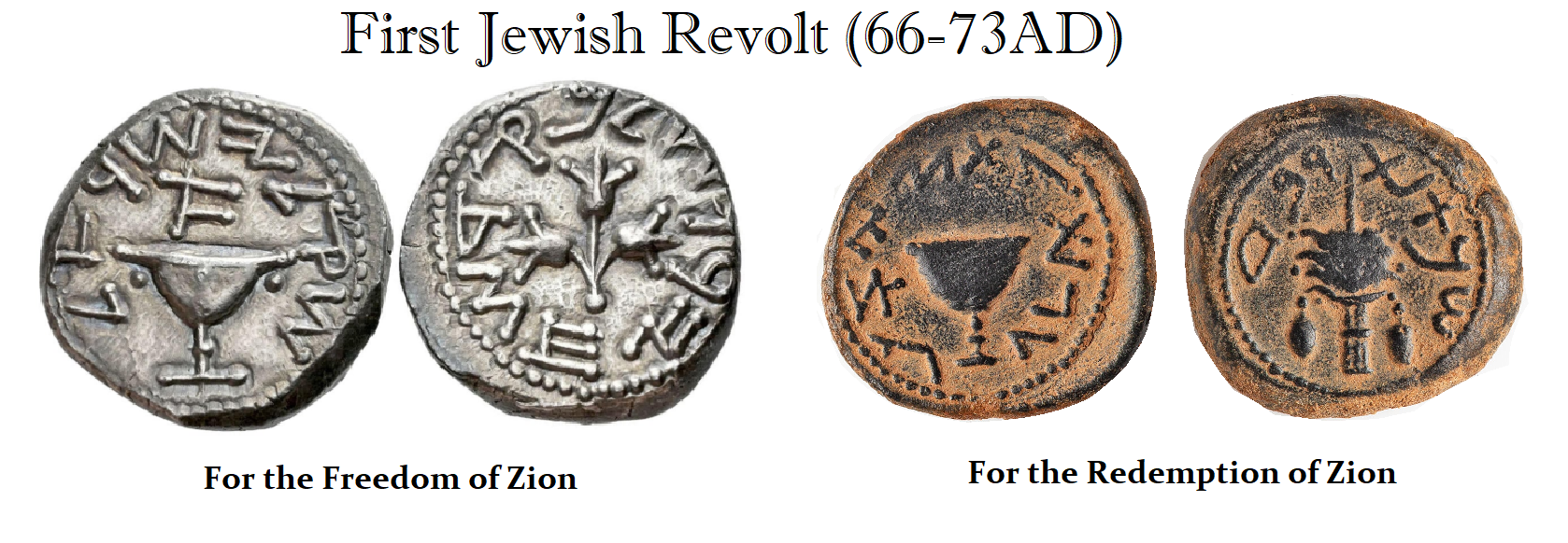 The Jewish Rebellion 69-73AD saw Jewish silver coins issued displaying a chalice with the Paleo-Hebrew inscription “For the Redemption of Zion.” The reverse was a lulav (palm frond) and etrog (citron) used in Sukkot. They were minted during the Roman siege of Jerusalem, just before the Temple’s destruction. The inscription shifted from earlier coins reading “For the Freedom of Zion” to “Redemption,” reflecting a shift from political hope to a desperate prayer for divine, messianic salvation as the end drew near. “For the Redemption of Zion” coins are direct archaeological evidence of a population actively anticipating the end as they knew it.