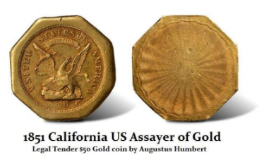 Gold became so common; they were even striking $50 gold coins in California when $20 was the highest denomination elsewhere and $1-dollar coins down to 25 cents all in gold. Eventually, there were $1 gold coins minted in the United States for general circulation throughout the USA. Indeed, Taylor wrote: