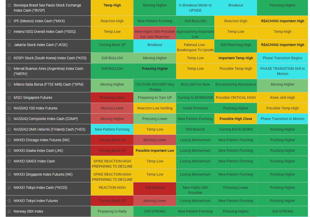 The Global Market Watch shows you the entire world at a glance. This is the best tool that shows when a CONTAGION is starting for it is monitoring everything that moves.