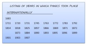 I was doing my own research now in the Firestone Library at Princeton University. I was searching old newspapers, looking for previous prices of booms and busts that I had been confronted with in gold. That’s when I stumbled upon an article that listed previous panics between 1683 and 1907. This was an old article published even before the 1929 Great Depression. That is why the list stopped with 1907. It was even pre-World War I.