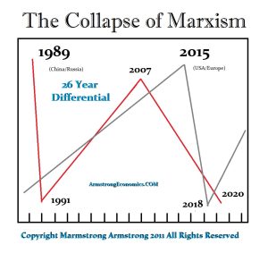 Simply, 2015.75 was the PEAK IN WESTERN GOVERNMENT. This was the 26-year differential between East and West. Hillary lost due to her manipulation of the Republicans, but in the process, she seriously damaged the foundation of the American economy and social structure. Her defeat in 2016 was precisely on target of 23 years from when Bill was inaugurated. But it was also 112 years (half of a 224-year cycle) from the 1904 elections when socialism first took the White House.