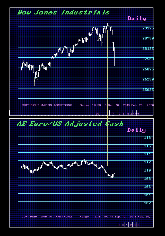 Two instead of Bernie being the reason for the very large drop in the Dow (and I think he’s a large problem for equity markets). Could It be the Coronavirus will substantially reduce economies all over the world and therefore equity valuations and earnings as well = equity sell-off and into cash?