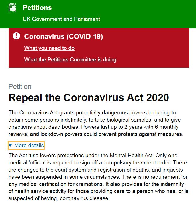 Petition For UK Parliament Repeal COVID Restrictions as Tyrannical