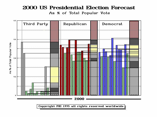 Here was the computer projection for the 1992 and 1996 Presidential elections showed that the Democrats should have won the popular vote. Clinton won both elections.Now look at the 2000 Presidential election. Our model projected a Democratic victory which would have been Al Gore over Bush. As we know, they refused to recount the Florida vote and it ended up in the Supreme Court which ruled along party lines.
