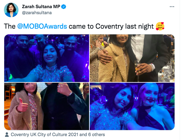 Answer: the rules do not apply to her. Sultana recently attended the Music of Black Origin (MOBO) Awards where she was spotted in a packed room without a mask. A proponent of shutting down schools and forced mandates, Sultana said that a mask-free Chamber was a “dangerous message to send to the rest of the country.” Yet, she is seen partying at a crowded function without the “protective” restrictions she expects the rest of the nation to abide by. Do we need any more proof that these policies are purely political?