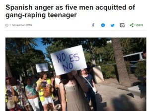 The legal scandal in Spain after a court acquitted five men of raping (sexual assault) a 14-year old girl because she was unconscious has sparked international outrage and local protests. It is not that the men were freed. Since the girl was unconscious, under Spanish Law technically she was not “raped” since she did not resist according to the court. Because she was in an “unconscious state,” the accused would not have had to use force to “rape” the girl even though she was a minor which seems really rather absurd. Nevertheless, according to Spanish law, one could only charge sexual assault (rape) if the victim is physically or psychologically forced to perform the sexual act. She did not resist because she had passed out because of alcohol and drugs.