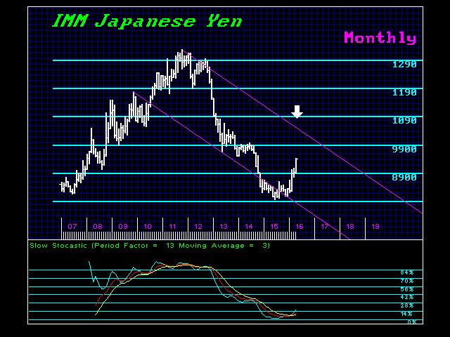 In the euro cash, we also elected a Monthly Bullish at the 114 level, producing the highest closing so far on a monthly basis. Now we may, at last, see that rally up to the 116 level.