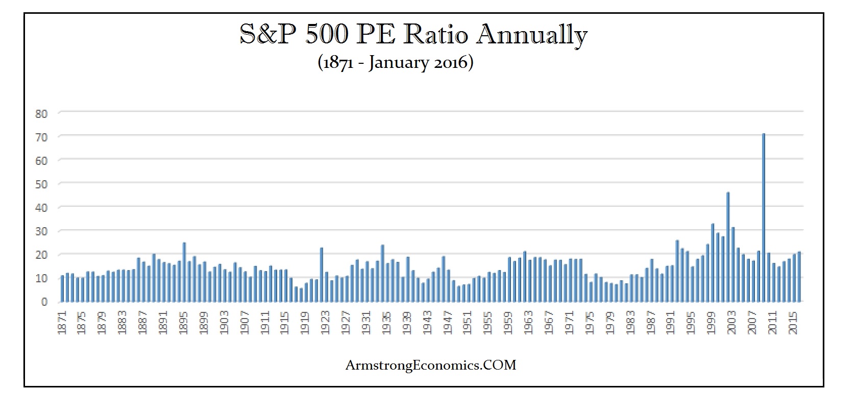 Then the question turns to where do we put our money? The majority of people believe the stock market is overvalued. The popular myths are that the PE Ratio at 25:1 says crash and that if interest rates rise, sell stocks. This has kept the majority of people out of the market. Retail participation remains at record lows. So exactly how is a crash supposed to take place when the bulk of the people are not in the market? For whatever reason, the talking heads on TV appear on all the shows because they are drumming up business rather than doing the research to actually provide real forecasts. A simple look at the historical PE Ration reveals that the historical high took place in 2009 – at the bottom of the crisis not the peak in a bull market. When things get bad and you do not trust bonds, government, or banks, where do you go? Real estate is nice for some part of a cash holding, but it is taxed to hold it and it is not liquid. Stocks are the ONLY game in town – but the blue-chips and not speculative issues.