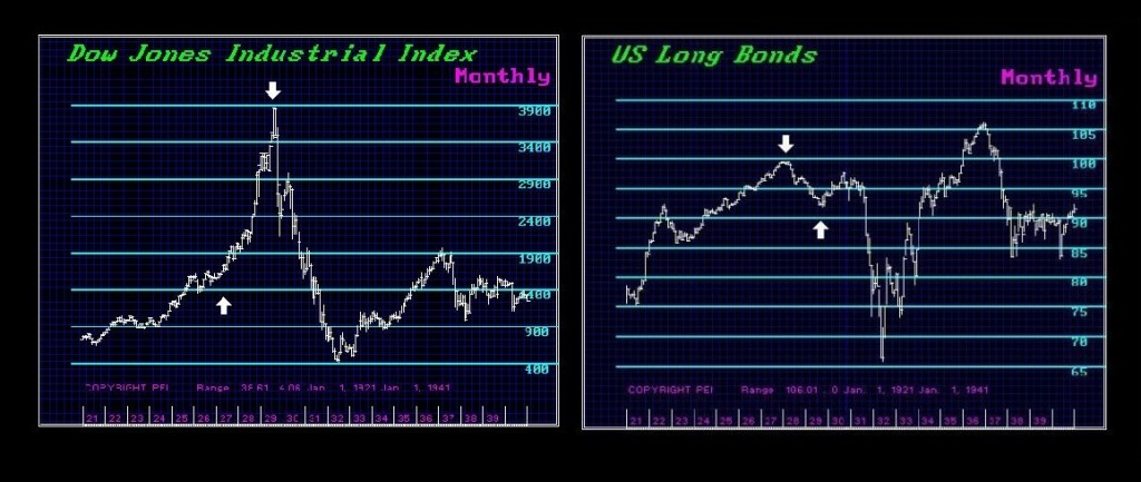 Then the myth of interest rates up and stock down is another classic nonsense theory touted by the talking head of TV. Not a single one of them has ever bothered to check the facts behind this one either. Andrew Melon said Gentlemen buy bonds (not blonds) for traditionally bonds was the place capital would flee to when the stock market declined. However, look closer. The Fed raised interest rates doubling them between 1927 and 1929 and the stock market doubled.