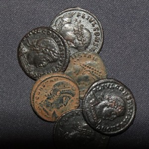 This is a small hoard of AE Bronze Numis of Constantius II who had been elevated to the rank of Caesar, the sole surviving male descendant of Constantius I and Theodora, Flavius Claudius Julianus. Julian was given responsibility for the defense of Gaul, where he distinguished himself as a good military leader. Fearing the popularity of Julian, Constantius ordered Julian to send his best troops to the East in support of the war against the Persians. Julian’s troops rebelled and proclaimed him Emperor while at his winter quarters at Paris in February, 360 AD. Julian strove to obtain recognition of his new status from his cousin Constantius and continued issuing coinage in the senior Emperor’s name. However, Constantius would have no part of sharing the rule.
