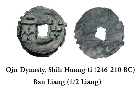At the end of the Warring States Period in 221BC, the first Emperor of the Qin Dynasty, Shihuangdi, unified of China making it one empire and built the Great Wall. This unification was marked by major reforms that included civil service, establishing standard weights and measures, his monetary reform system that introduced a round coin. The shapes actually meant something whereby the circle equals heaven and the square hole represents the earth. Prosperity continued through the Qin Dynasty (221-206 BC) but inflation appeared during the subsequent Han Dynasty (206BC-220AD).