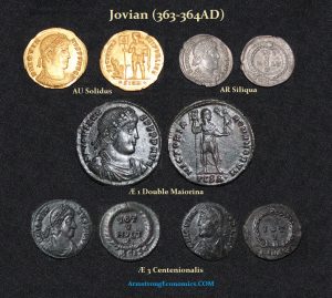 During an ill-fated expedition to Persia, the death of Julian II placed Jovian in a position where he was hailed as Emperor by the troops. His first job was to withdraw his troops from the dangerous situation they had found themselves in under Julian’s command. His troops were exhausted, and the continued attacks by Shapur II forced Jovian into a treaty under which parts of Armenia and Mesopotamia were given up to the Persians. With a humiliating peace concluded, Jovian finally arrived at Antioch, where he immediately repealed Julian’s pagan policy and declared Christianity the Empire’s official religion.