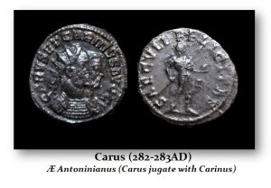 Marcus Aurelius Carus was the Prefect of the Praetorian Guard under Probus. Upon the Emperor’s death, Carus was proclaimed Emperor by the troops. He immediately conferred the rank of Caesar on his two sons Carinus and Numerian, and set out on an expedition against the Persians. Numerian accompanied his father to the East leaving Carinus behind to govern the Western provinces.