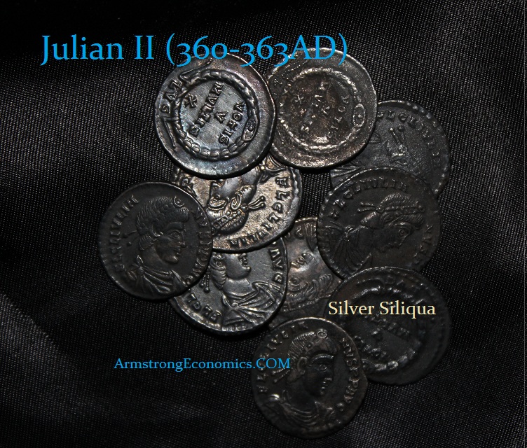 There was really a massive invasion of people from the north as the climate began to turn colder. It was more than just barbarians seeking plunder. They were migrating due to climate change. In 357AD Julian, had defeated the barbarians known as the Alamanni giving him the prestige and political power to be respected. He stepped in and prevented a tax increase by the Gallic (France) praetorian prefect Florentius and personally took charge of the province of Belgica Secunda. Julian now cross from military to civil administration, where he demonstrated his philosopher training being influenced by his liberal education in Greece.