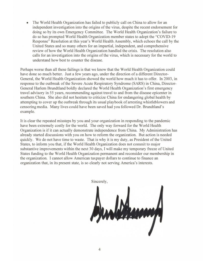 COMMENT: Marty, Trump is now adopting your strategy and publishing openly his letters to the WHO.