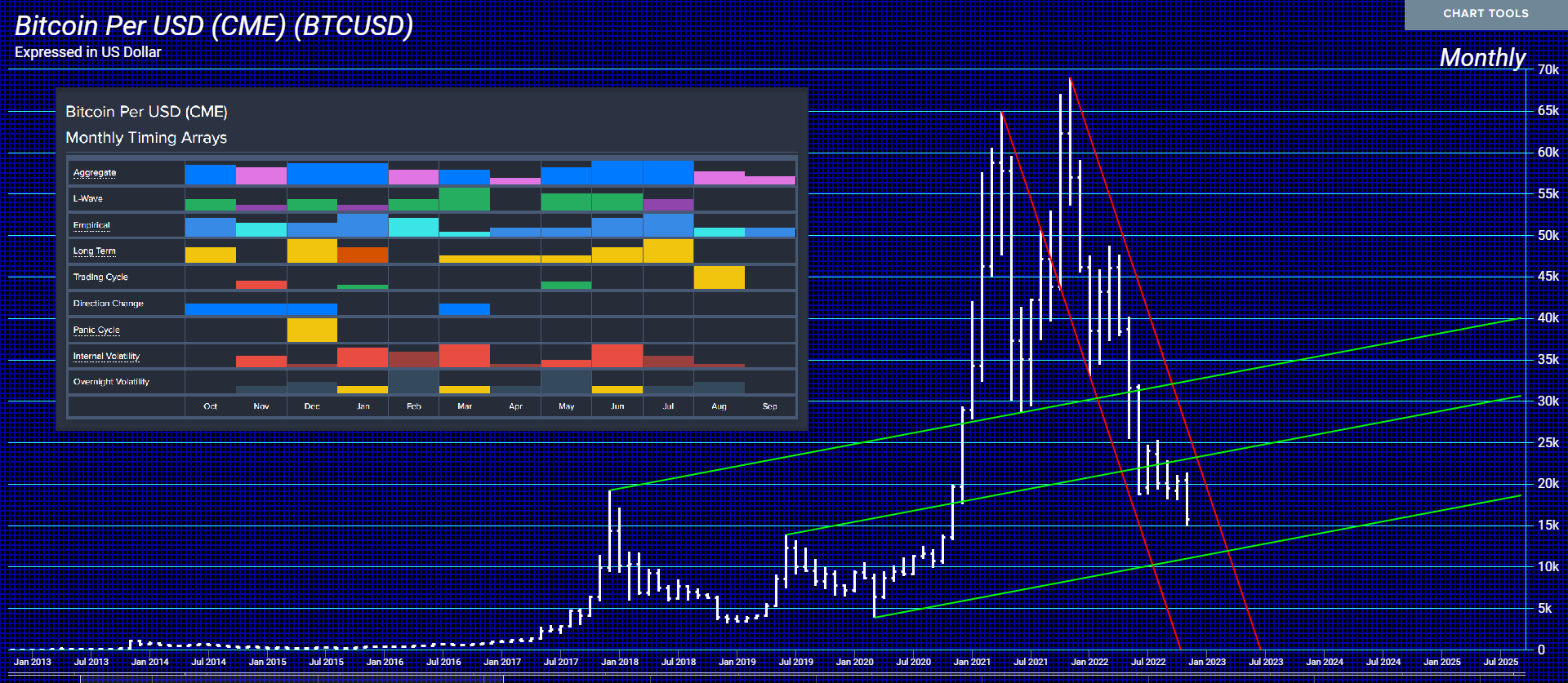 Our computer had picked the high in Bitcoin perfectly and has been projecting the collapse all along the way. But crypto has become a religion and in so doing it clouds the judgment of people who want to believe the story. Alameda blew up in a crypto meltdown because it did not want to accept that the crypto boom was over. The loan he probably thought would be temporary, vanished in the implosion. At first, I would have assumed they had actually invested the money and lost it on the bond market collapse. But that was perhaps too traditional. Here, it appears they were trying to defend their own cryptocurrency and trying to buy the low that kept moving lower. It appears he was allegedly simply using clients’ funds to trade keeping gains for his firm and the clients now suffer the risk.