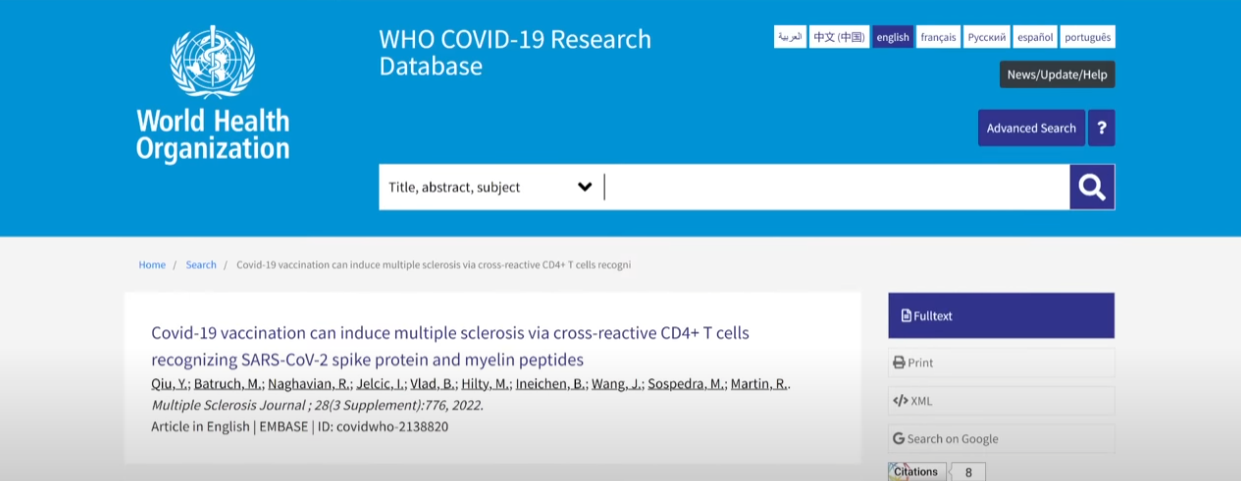 The AP claims it is misinformation. Yet the WHO Website actually used the words that the “Covid-19 vaccination can induce sclerosis…”
