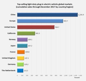 Nevertheless, German companies are finding these requirements are unreasonable to meet 95 grams of CO2 emissions. That means the consumption of fuel must be around four liters per 100 kilometers. That is a very major objective imposed by this theory of Global Warming. The market for electric cars is really confined to Europe for regulation purposes, but the number one market is China where electricity prices are the lowest.