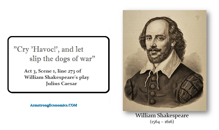 The West has indeed unleashed the Dogs of War. Cry Havoc, for our pretend elected politicians prefer war to honest economic reform where they would have to admit that borrowing year after year with no intention of ever paying anything back has come to an end. They were willing to sacrifice the lives of so many people all to retain power.
